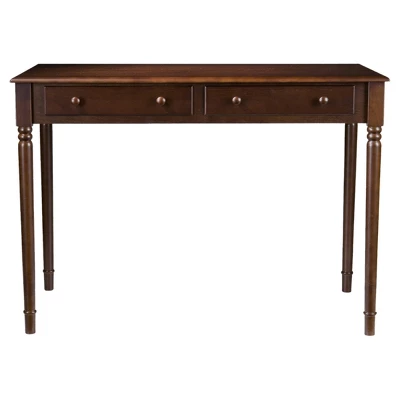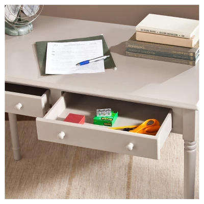 Bring a timeless touch to your home office or living space with the Two-Drawer Writing Desk from Aiden Lane. This computer desk’s simple silhouette encompasses unexpected farmhouse details, upgrading your rustic look. The side-by-side drawers offer ample storage space for writing utensils and notebooks, keeping your workspace neat and tidy. Add a matching desk chair for a cohesive look, or pair it with a pop of color crafting a study space that makes the grade. Take refuge in soft cozy textures while clean lines and angles create a well-balanced design. From intimate seating to ambient lighting, Aiden Lane transforms your house into a home.