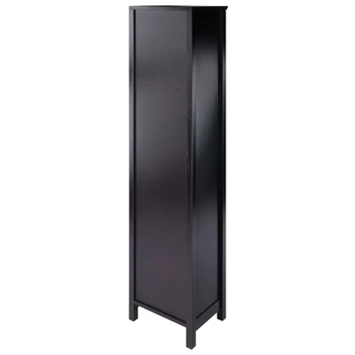 Enhance the appearance of any room with the simple yet attractive design of the Winsome Wood Terrace 5-Piece Storage Shelf Set. Spacious, narrow shelf perfect for displaying family portraits and treasures in the living room or home office. Finished in a rich espresso and made of solid and composite wood for long-lasting durability. The set of baskets are woven in durable flat polypropylene in a chocolate finish and have two cut out handles, one on each end, for carrying purposes. Prompt up and these baskets measure 10.24”W x 11.02”D bringing charm and style. When not in use, they fold for easy storage taking up almost no space. So, whether you need it in the mud room for shoes, laundry room for the towels and detergents, or for your books in your home office, this 4-tier shelf offers stylish organization for all your essentials. This set is shipped in three boxes. The shelf will ship separately and will include the hardware necessary for assembly.