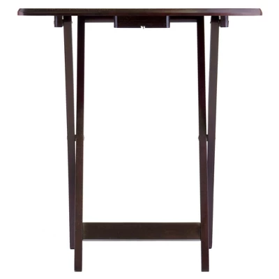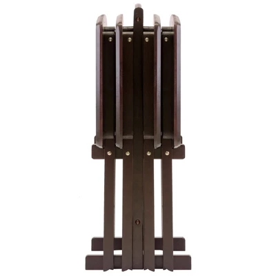 The Dylan 5pc Oversize Snack Table Set makes entertaining easy. Constructed of Solid Wood, this stylish set includes four foldable tables with X-frame bases and a convenient storage stand. The snack tables have gently curved sides and rounded corners and are oversized for more table space. Ideal for setting out appetizers at the big game or for grabbing a meal while you’re relaxing on the sofa. Finished in a rich Espresso.