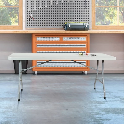 Perfect for when the occasional need for an extra table pops up, this 6 foot long resin multipurpose table is both light weight and durably constructed with a sleek design. The tables legs can folded down for easy storage and is ideal for both indoor or outdoor use with its power coated tubular frame and 45mm thick top.