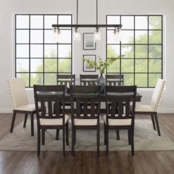 9pc Hayden Extendable Dining Set With 6 Slat Back Chairs And 2 Upholstered Chairs Slate – Crosley