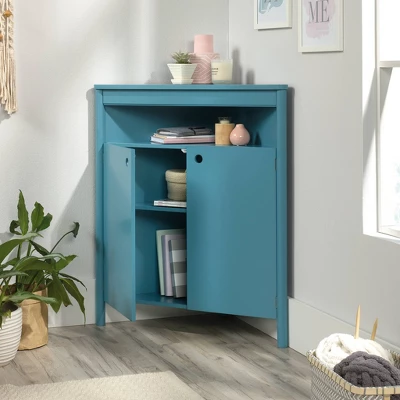 So many things, so little space. We can fix that! Create versatile storage options in your home without having to sacrifice on style or space with this corner storage cabinet from the Anda Norr collection. This space-saving storage cabinet features a minimal footprint so it can easily tuck into any corner of your home while still offering the storage that you need. Its spacious top surface offers the ideal amount of room to display your favorite home décor items like an accent lamp, decorative plants and photos of your family and friends. This corner cabinet features a cubbyhole storage area that is ideal for easy access storage of notebooks and books. Behind its double doors is a hidden storage area that include an adjustable shelf that can be moved to different heights to create flexible storage for items of all shapes and sizes. Finished in Sea Blue, this one-of-a-kind corner storage cabinet is perfect for any small space in your home.