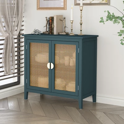 This traditional Amerian style cabinet keeping clutter under control effortlessly provides a perfect choice for you. Boasting a stream-lined appearance, this attractive work of art is a wonderful combination of MDF+ash wood veneer+pine legs,, ensuring a long life with perfect stability and durability. Being a considerate companion to your home decor, it’s hand-painted and incorporates special rattan woven, simulated wood patterns and retro elements on its surface, turning your room into an elegant and textured place instantly and best to show your noble taste. Simply open its double doors to reveal hidden areas, 1-shelves inside provide ample storage to sort out daily essentials conveniently, while the optional neutral hues make this stylish cabinet ideal to blend with your home decor in every style, helping you to create functional living room, dining room or bedroom storage.