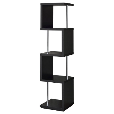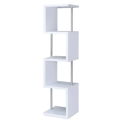 Baxter 4 Shelf Zig Zag Bookcase With Chrome Details – Coaster