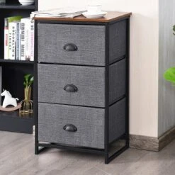Costway 3 Drawer Nightstand Side Table Storage Tower Dresser Chest Home Office Furniture