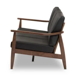 Venza Mid-Modern Walnut Wood Faux Leather 3 Seater Sofa Black – Baxton Studio