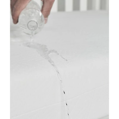 The 5 Inch Firm Eco-Air Crib Mattress has an Organic Cotton, water repellent, removable & machine washable cover. This 100% Breathable mattress not only helps regulate temperature by allowing air to pass through the entire mattress, but there are no VOC’s, no off-gassing (that chemical smell when you open a mattress with foam), and no toxic emissions. It’s designed for firm infant support. All materials used are eco-friendly, hypoallergenic, and breathable. This mattress is GreenGuard Gold Certified.