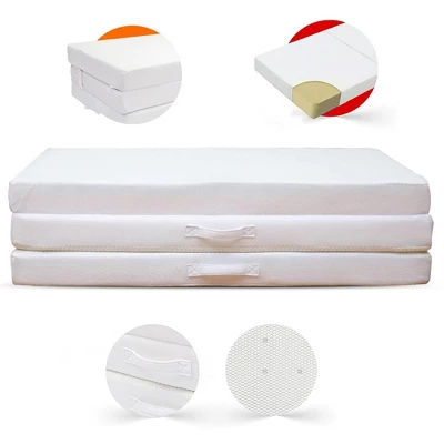 Introducing the Cheer Collection Trifold Mattress – an answer to spontaneous sleepovers, unexpected guests, and outdoor adventures. This mattress offers a spacious and comfortable rest. Crafted with an emphasis on comfort, it boasts a plush foam core wrapped in a luxurious rayon from bamboo fabric. Its ventilated mesh sides ensure a breezy and rejuvenating sleep experience.Versatility is at its core. Within seconds, transform any floor into a cozy resting spot. Be it in a dorm, during travels, or for those fun camping nights, this mattress offers flexibility without compromising on comfort. And when it’s not in use? Its trifold design means it stores away with ease, even in the smallest of spaces.The inclusion of a soft, removable rayon from bamboo cover not only feels heavenly against the skin but is also machine-washable, ensuring longevity and freshness. Portability is amplified with the addition of carry handles, making it a breeze to transport for those outdoor excursions.Beyond just sleeping, it’s a multipurpose gem. Fold it to craft a DIY sofa, spread it out for kids to play, or simply lay it down with a book. Every home deserves the adaptability and convenience of the Cheer Collection Trifold Mattress. Elevate your comfort, anywhere, anytime.
