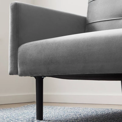 • Choose from Brown Faux Leather, Black Faux Leather, Charcoal Linen, Gray Linen, Gray Velvet, Green Velvet, and Navy Velvet upholstery