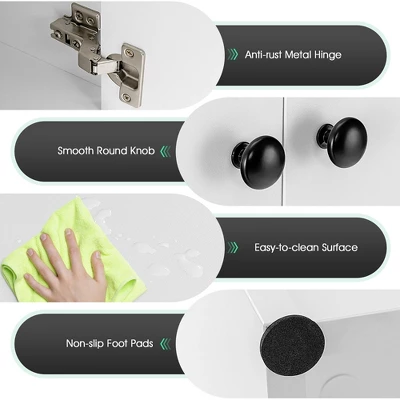 - Ultra-stable Structure: To further improve safety and stability, our side cabinet is equipped with anti-toppling fittings to fix it to the wall. Non-slip foot pads effectively prevent the floor from being scratched. This freestanding cabinet can hold a total of 242 lbs without wobbling.