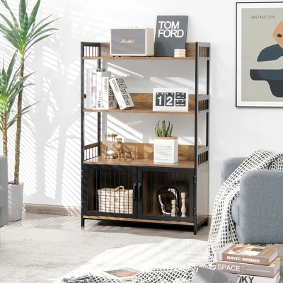 Are you looking for a storage organizer that keep all your kitchen utensils, books or other sundries? Then our kitchen baker’s rack with 3 open shelves and a 2-door cabinet is a good choice! The shelves are spacious enough for kitchen appliances, like microwave oven. And with 3-side edge protection, things you put on it are not like to falling off. Besides, the bottom cabinet is fitted with grate doors, which provide certain protection and ensures good ventilation. In addition to storage function, the storage cabinet is also an attractive addition in industrial and modern style. Standing 49.5” tall, the kitchen storage cabinet can still keep excellent sturdiness and stability, since it is made of premium MDF and durable steel.