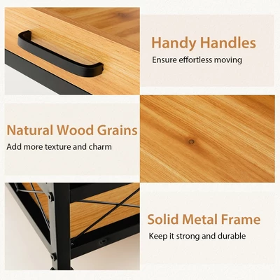 - 4 Rotatable & Detachable Wheels: 4 360-degree rotatable wheels make it easy to move the cart from the kitchen to the living room. 2 of the wheels are lockable to help it stay still. Plus, you are allowed to choose to install the wheels or not.