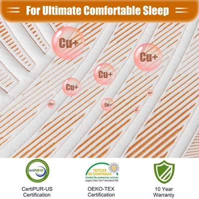 - Certified Material for Safety & Durability: Being certified by CertiPUR-US and Oeko-Tex Standard 100, the copper cooling mattress boasts superior safety level and long-lasting service life. The jacquard cover is super breathable & skin-friendly, offering you a fine touch and ultimate comfortable sleep.