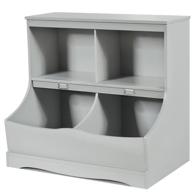 - Multi-Bin for Large Storage Space: Featuring 2 cubbies and 2 bins, this toy organizer provides ample storage space for you to arrange your children’s picture booksand toys. Besides, the spacious top is ideal for displaying photo frames and plants.