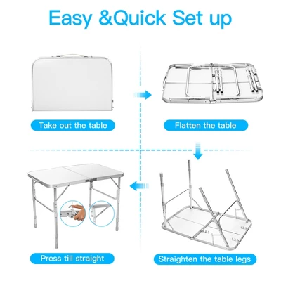 Costway Patio Folding Camping Table Aluminum Adjustable Portable Outdoor Indoor