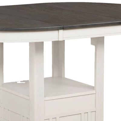 Enjoy sophisticated dining with your friends and family by bringing in this counter height Table that comes with leaf extension to accommodate unexpected guests. Constructed sturdily from wooden frame, the dual tone finish in the hues of white and gray accentuates its appeal. It has molded trim details and inspired by cottage style.