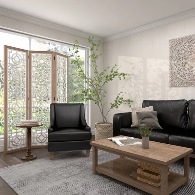 The best way to break uneven spacing in your home and create depth in a wide open floor plan. Bring a finishing touch to your home with an inviting appeal with this unique room divider. Use this 3 panel room divider to break up negative spacing in your home or to create an artistic display. This item ships in 1 carton. Suitable for indoor use only. This item ships fully assembled in one piece. Item features 3 panel screens. This is a single white colored folding panel partition. Farmhouse style.