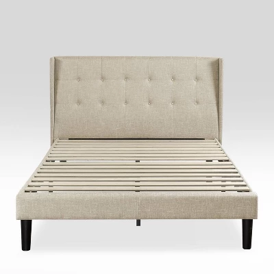 Win back some style for your bedroom with this trendy wingback upholstered button tufted platform bed. The Zinus Athena features wooden slats and exposed feet that provide a sturdy framework to rest your mattress. Its elegant taupe upholstery adds softness to the bold wingback headboard with button detail.