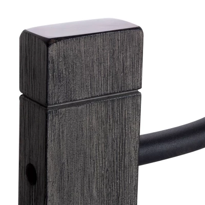 - Metal bed in a textured black finish with double arched and spindle design with brushed charcoal wood finished posts