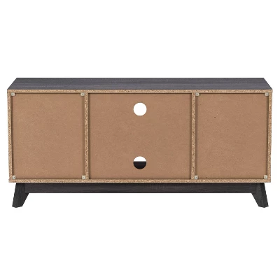 Take your living room to the next level with this stylish modern TV stand. Made with flared wood legs, four drawers, and four open shelves for a mid-century modern appearance. This entertainment center creates additional storage space in your home for media, electronics, accessories, books, or decor. The beautiful rich wood grain finish looks great in any aesthetic. This bench fits most TVs up to 55″ and is the perfect combo of classic colors and modern lines.