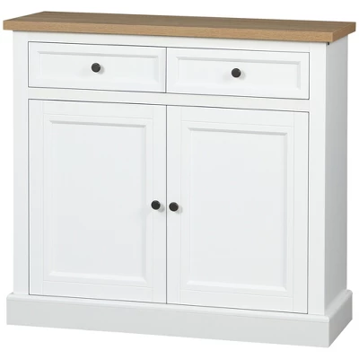 HOMCOM Sideboard Buffet Cabinet With Storage Drawers, 2 Door Kitchen Storage Cabinet With Adjustable Shelves, Coffee Bar For Living Room, White