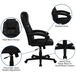 Flash Furniture Hansel High Back Black LeatherSoft Executive Swivel Office Chair With Arms