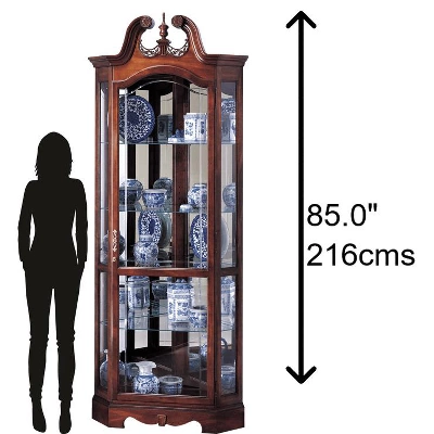 - Careful Craftsmanship: Howard Miller offers a carefully crafted piece for this corner curio cabinet. The antique curio cabinet is finished in Windsor Cherry on select hardwoods and veneers.