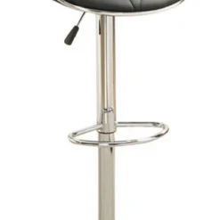 Set Of 2 Leather Upholstered Barstool With Gas Lift Black/Silver – Benzara