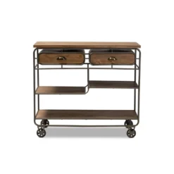 2 Drawer Grant Vintage Rustic Industrial Wood And Metal Kitchen Cart Brown/Black – Baxton Studio