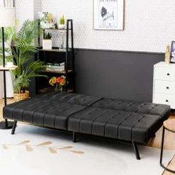 Best Choice Products Convertible Living Room Linen Fabric Tufted Split-Back Futon Sofa W/ 2 Pillows