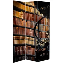6″ Double Sided Library Canvas Room Divider Brown – Oriental Furniture