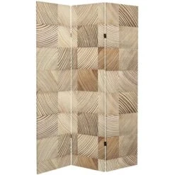 6″ Double Sided Pale Wood Pattern Canvas Room Divider Brown – Oriental Furniture