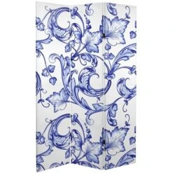 6″ Double Sided Filigree Canvas Room Divider Blue – Oriental Furniture