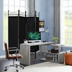 Costway 4 Panels Folding Room Divider 6 Ft Tall Fabric Privacy Screen Black/Brown/Grey/White