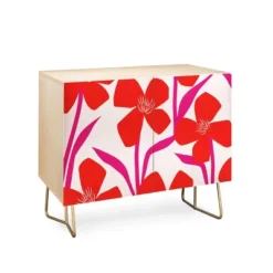 Maritza Lisa Red And Pink Floral Pattern Credenza – Deny Designs