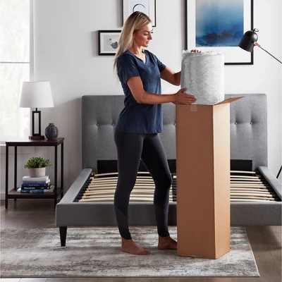 Sleep soundly upon this eight-inch, dual layer mattress. With a 2-inch layer of gel memory foam that helps align the spine by conforming to your body, the second layer comprised of six inches of high-density foam gives the mattress a medium-firm feel. The foam is designed with ventilation in mind to keep air flowing and maintain a comfortable sleeping temperature, and all of the foam in this mattress is CertiPUR-US quality certified. The LUCID Comfort Collection mattress ships to you in a compact container that is easy to bring inside and set up. Covered in a textured, breathable fabric.Â