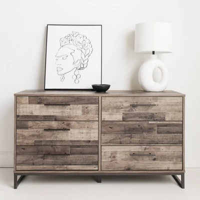 Streamlined design and a stunning two-tone finish come together in one simply extraordinary piece. This dresser is sure to impress with six smooth-operating drawers, canted metal legs and rich brown finish over replicated pine grain texture. Its mid-century style is a nod to the past, while the updated finish keeps it solidly in the present. Signature Design by Ashley is a registered trademark of Ashley Furniture Industries, Inc.