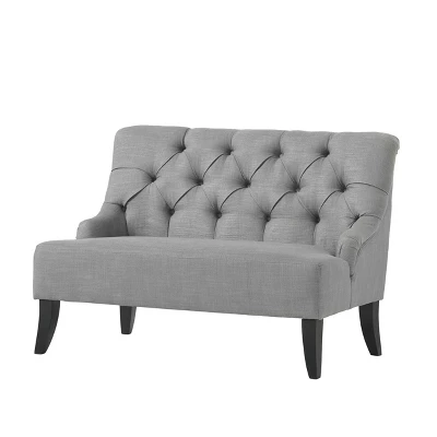This Christopher Knight Home Nicole Settee offers seating with a design derived from French Colonialism. The curve of the backrest is mirrored in form by the chair legs giving the piece a unique elemental twist. with tufted detailing along the backrest the Christopher Knight Home Nicole Settee will add a refined and elegant touch to any room you place it in. This settee is a perfect addition to any room of your home. A must have!