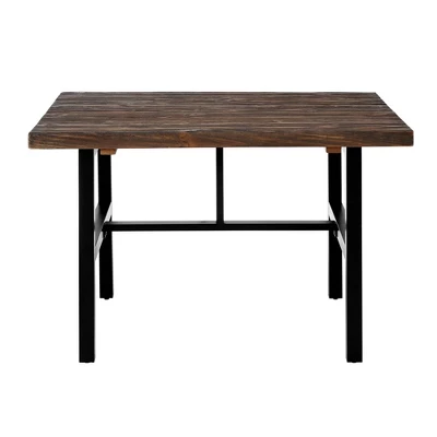 The Pomona Metal and Reclaimed Wood Dining Table in Brown from Alaterre Furniture is a great addition to your dining area. The 48″ dining table features a rustic modern design and solid pine wood. The knots, cracks and imperfections of the reclaimed wood look add to the character of your piece. Strong, powder-coated steel legs make a statement in your living space. Pair with your favorite dining chair or bench.
