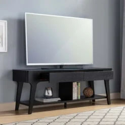 FC Design 60″W Contemporary TV Stand With Two Drawers And Rounded Corners In Black Finish