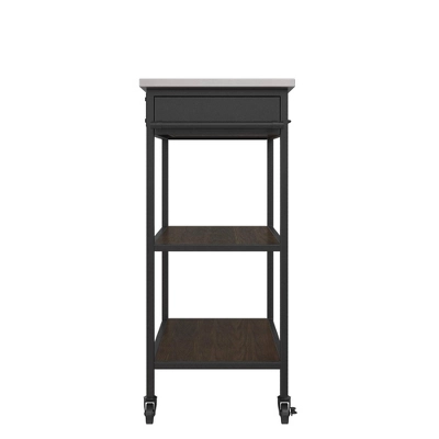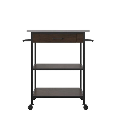 Running out of counter space and don’t know where to put your smoothie blender and mini-food processer? We hear you! The DHP Kane Kitchen Cart was designed to be the go-to organizer to help you tackle your kitchen chaos. Compact enough to fit in small kitchen or dining areas, the Kane displays modern rustic elements such as a dapper stainless steel counter top, rich brown wood paneling, and a metallic black frame. Basically an extension of your kitchen on wheels, its easy glide lockable casters let you move everything you need for meal prep closer to your stove so you don’t have to run around to find that vital spice blend your recipe so duly requires. With an upper drawer, 2 lower shelves, and 2 side towel bars, you have all the storage space you could ask for in one self-contained unit so your pantry staples, dinnerware, and cookware will finally have a dedicated home.