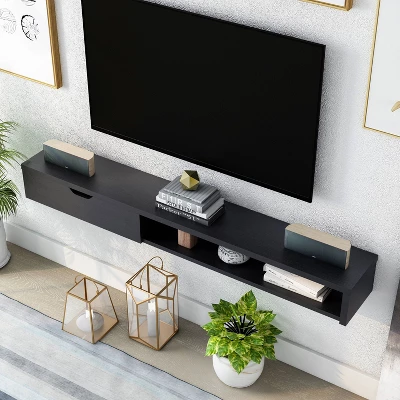 Roundhouse 1 Drawer Floating Console Fits Tv’s Up To 65″ – HOMES: Inside + Out