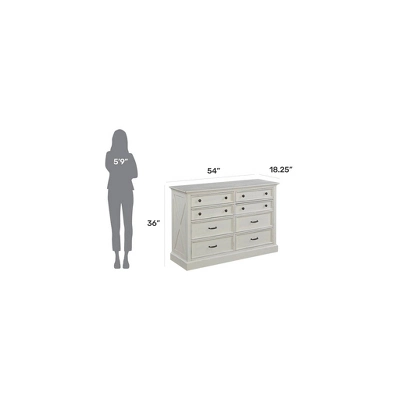 Whether outfitting the master bedroom or making a guest room feel like a guest suite, add the finishing touches with this Homestyles Seaside Lodge Dresser. Eight drawers provide plenty of storage for clothing and personal items, and the large top is large enough to support everything from a mirror to a flat screen. The off-white finish brings a coastal feel into any bedroom and the coastal style creates a light, casual feel.