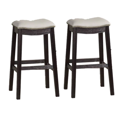 Set Of 2 29″ Wooden Counter Height Barstools With Upholstered Cushion Seat – Benzara