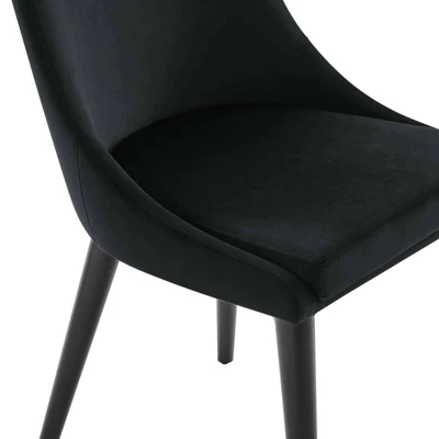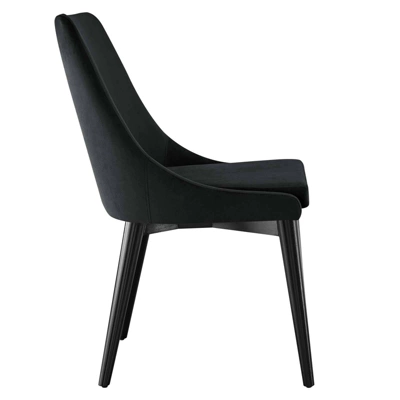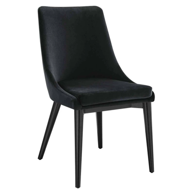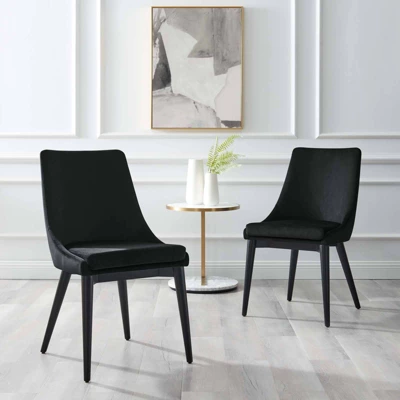 Revitalize your dining decor with the Viscount Dining Chairs – Set of 2. Graceful, minimalist lines blend seamlessly with the lush comfort of Viscount which features soft, stain-resistant performance velvet upholstery, dense foam padding, and black rubberwood tapered legs. Viscount’s versatile vintage modern style make this set ideally suited for a variety of rooms. Place Viscount in the dining room or kitchen as dining chairs, or in the living room, entryway, or bedroom as accent chairs. This modern accent dining chair supports up to 300 lbs. and includes non-marking foot caps to protect flooring.