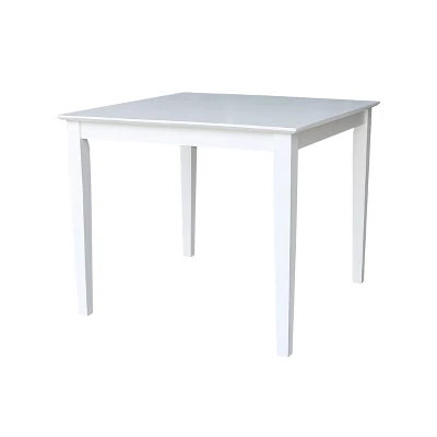 For those who appreciate high quality wood furniture with a traditional and elegant look. International Concepts home furnishings will complement any décor. This Dining Table is made of solid wood ensuring years of use. This square dining table features a butcher block top, shaker styled legs, and comes in a beautiful white finish. Available in standard dining height and counter height options. The standard dining height table is for use with dining chairs and measures 36″ W x 36″ D x 30″ H. The counter height table is used with counter height stools and measures 36″ W x 36″ D x 36″ H. This Solid Wood table ships ready to assemble in 2 boxes.