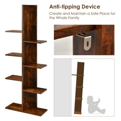 Tangkula Modern Multi-Layer Bookshelf Floor Standing Bookcase W/Anti-fall Device Storage Rack For Home Office Rustic