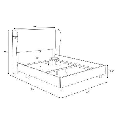 - Upholstered wingback bed frame set with clean lines and an elegant style