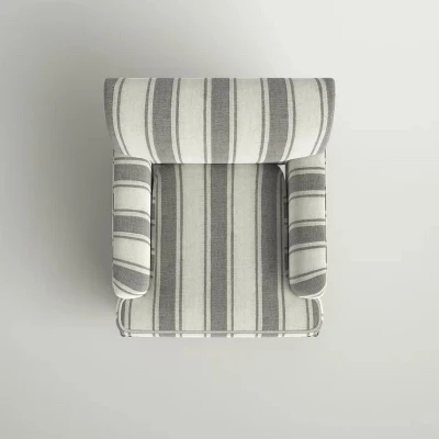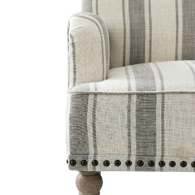 Farmhouse style and classic design combine in this inviting armchair. It features a solid and manufactured wood frame, wrapped in 100% polyester upholstery with a stripe design, elegantly carved front legs, and simple back legs that offer a visual variation. The foam-filled back provides extra support, while the nailhead trim adds a dose of vintage design to it. It is suitable for most of your daily scenarios such as study room, bedroom, and living room. Whether youÂ’re enjoying quality family time or entertaining guests, this armchair will extend an open invitation for everyone to relax.item size?28.7″Wx30″Dx34.8″H?Seat size?19.8″Wx21″Dx18.5″H