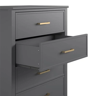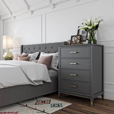 Organize your wardrobe in style with the CosmoLiving by Cosmopolitan Westerleigh 4 Drawer Dresser. The Westerleigh is accented by trendy gold hardware with four spacious drawers to hold all of your #ootd. The top surface provides room for all of your chic obsessories, and a wall anchor kit is provided to prevent tipping injuries. Available in white or graphite gray, this dresser will nail the décor game.